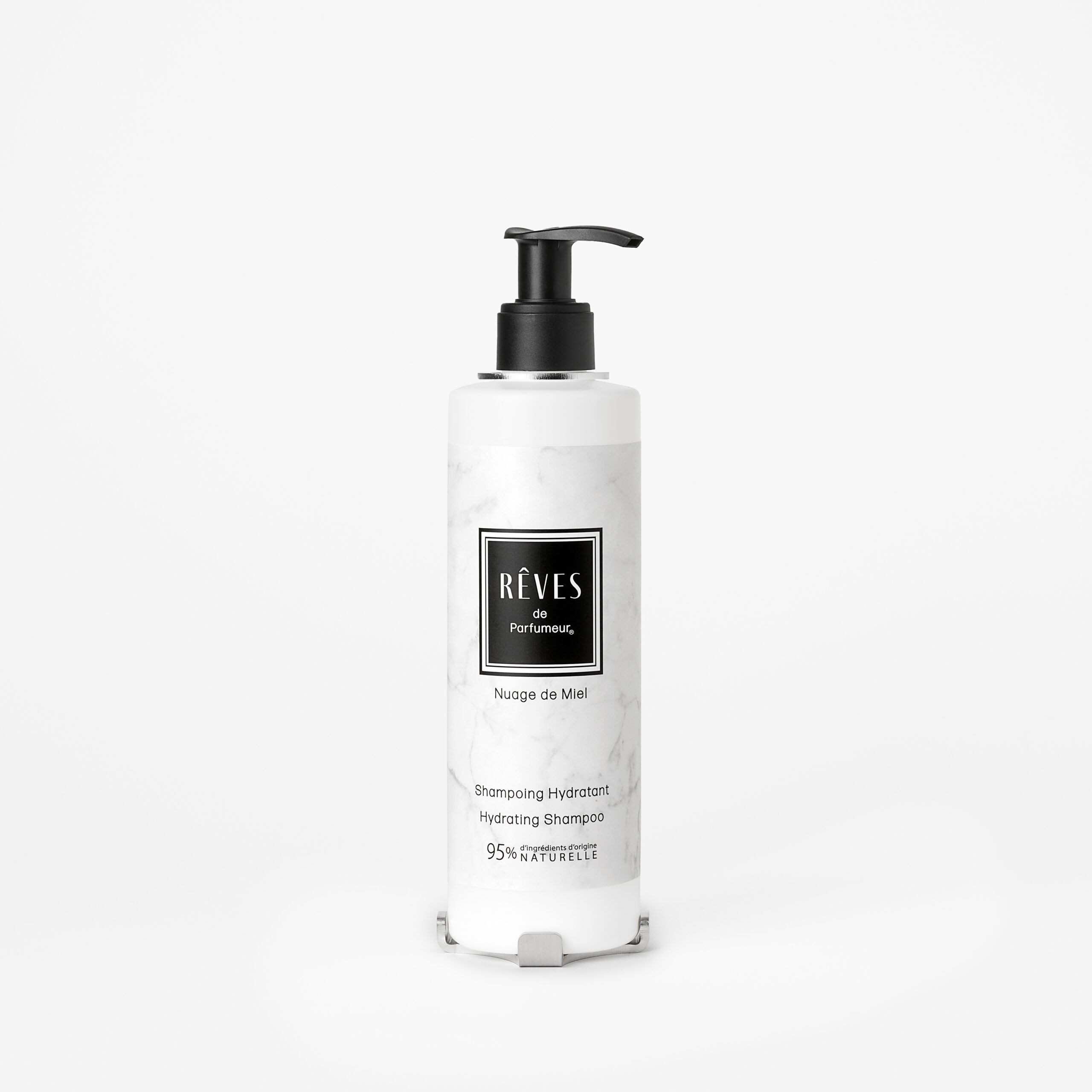With its luminous and warm fragrance that evokes an olfactory journey between sweet sweetness and woody depth, the RÊVES de Parfumeur moisturizing shampoo “Nuage de Miel” takes care of the scalp by bringing radiance and vitality.